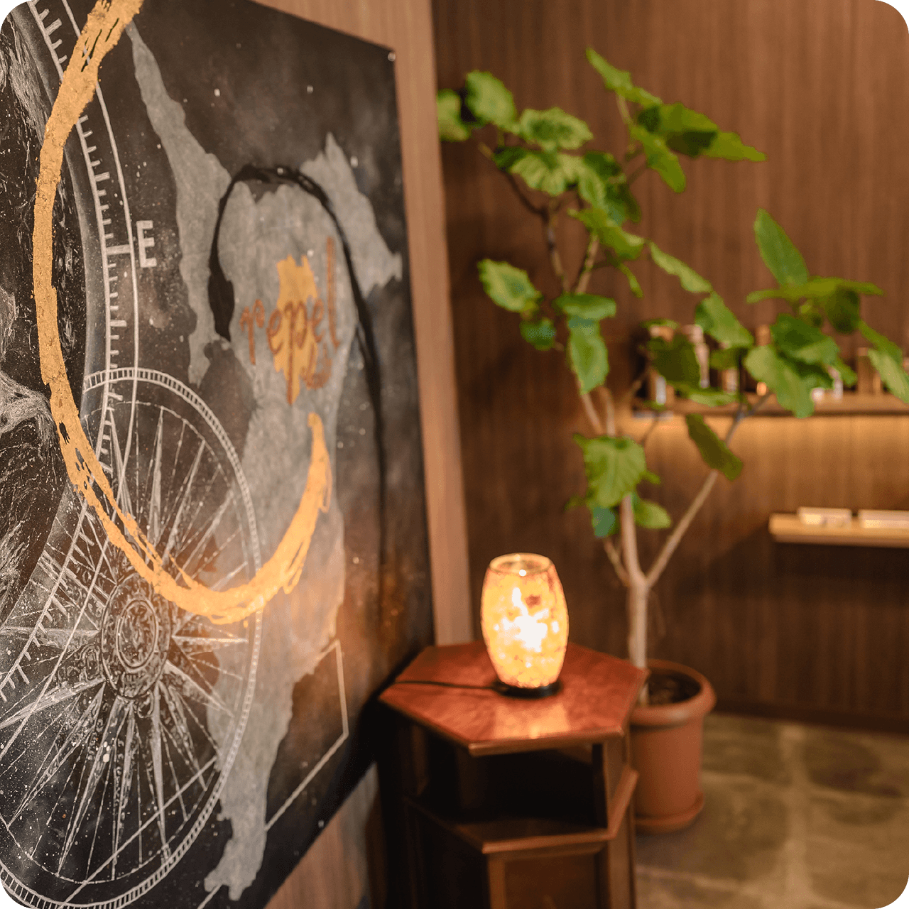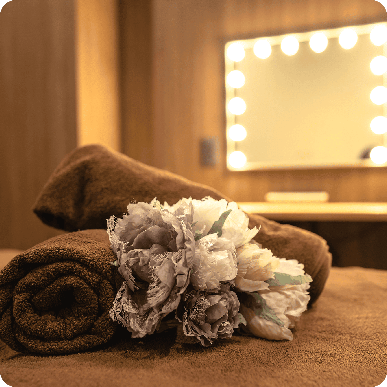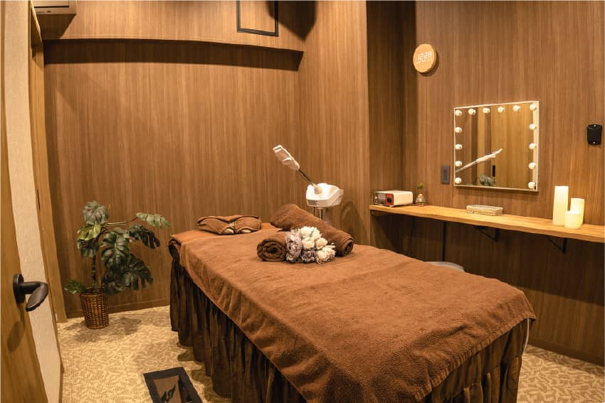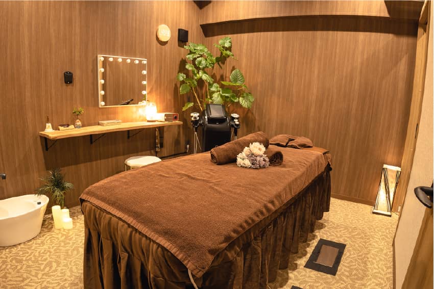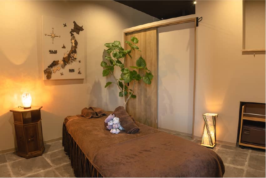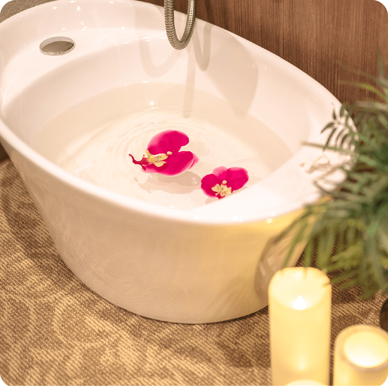 アロマやボディケアにおすすめの個室空間となっております。※足湯使用の場合、追加料金(税込500円)がかかります。