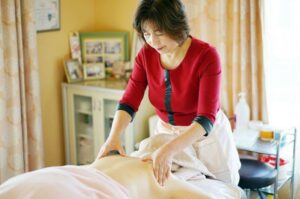 ②背中全体+首、肩マッサージ +腰 (うつ伏せ)